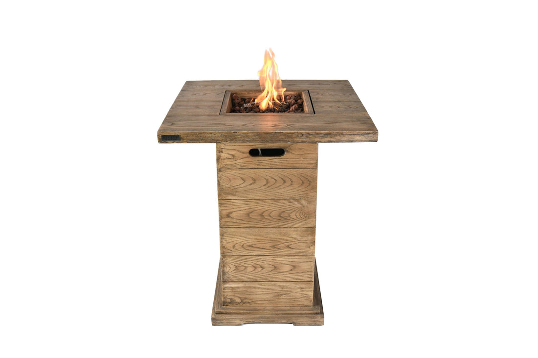 Fire Pit Description Introducing the Lafite Natural Wood Bar Height Concrete Propane Fire Pit Table...