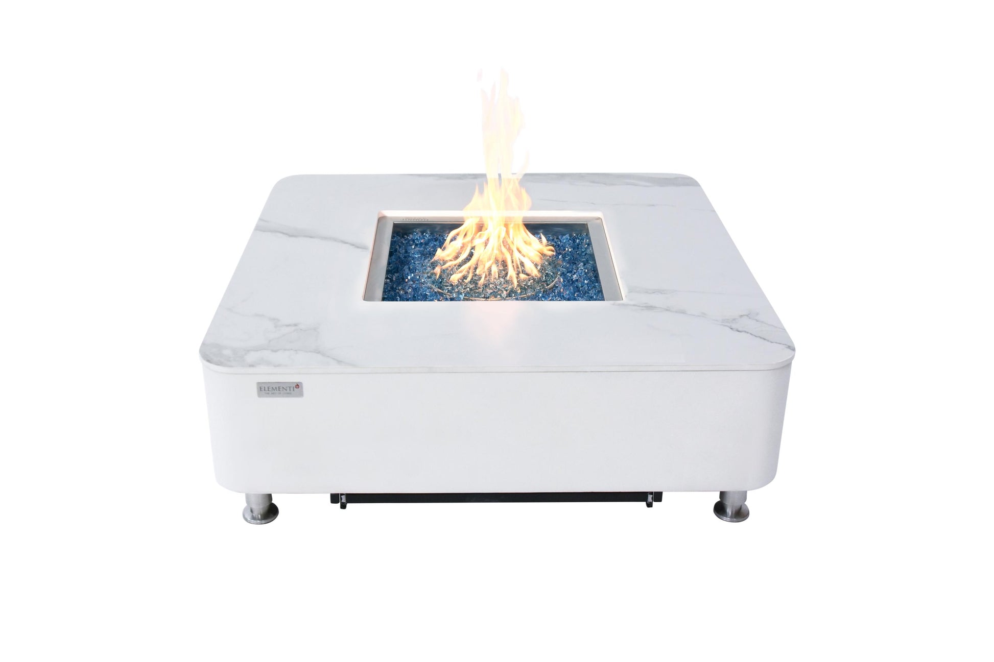 Introducing the Annecy Modern Marble and Concrete Square Fire Pit Table by Elementi, the perfect addition to any outdoor patio or backyard. This high-end fire pit provides both warmth and a modern look, making it the best fire pit on the market.