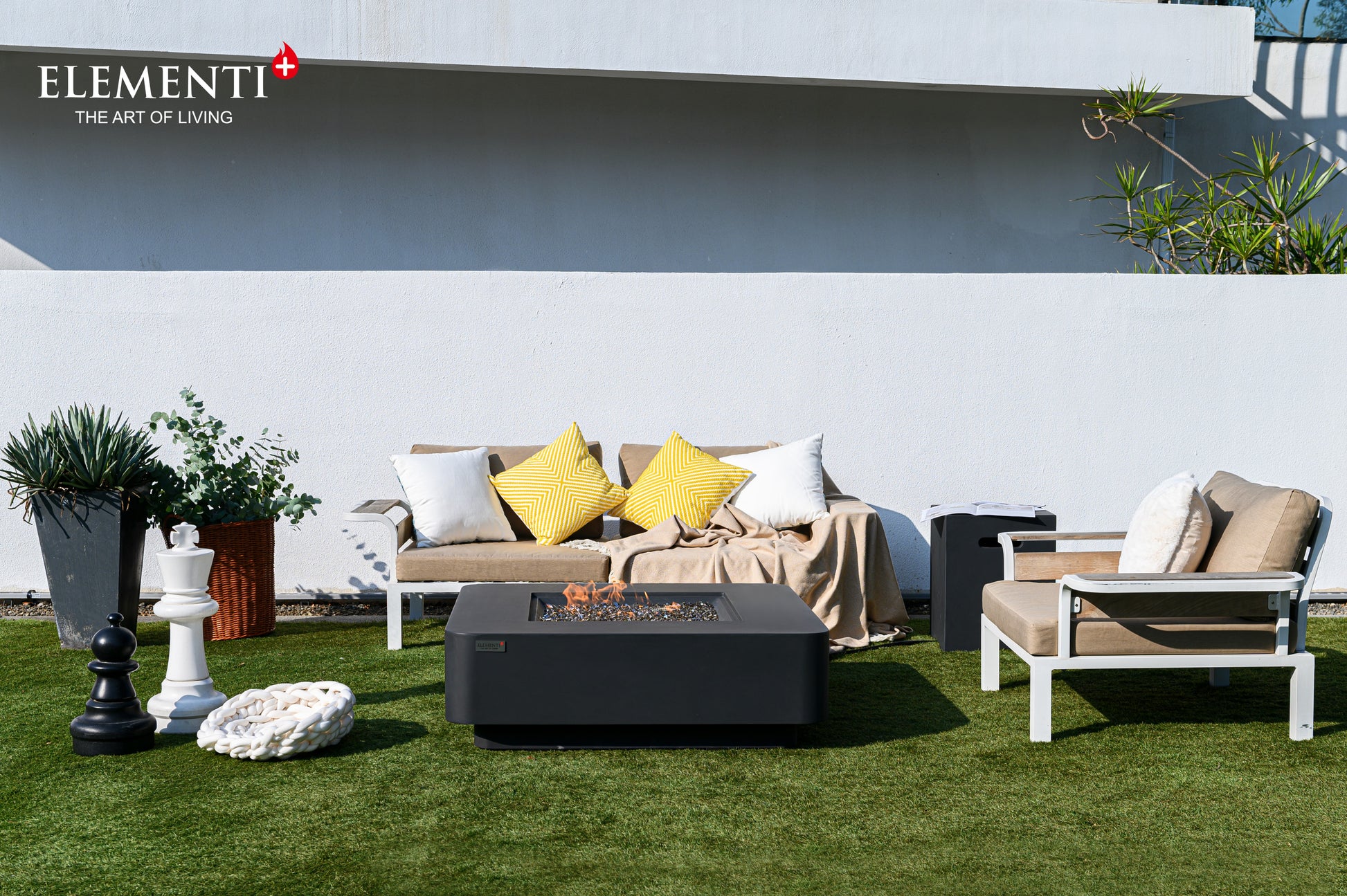 The Bergamo Modern Smooth Concrete Square Fire Pit Table is one of the Top of the Range Fire Pits and the perfect gas Fire Pit for your outdoor patio.