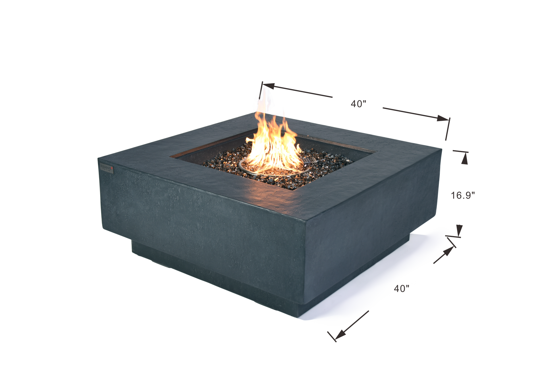 Transform your outdoor living space with the stunning Bergen Natural Limestone Concrete Square Fire Pit Table from Elementi. With its sleek square shape and natural limestone finish in a dark gray color, this gas fire pit table is the perfect centerpiece for any outdoor patio or backyard gathering.