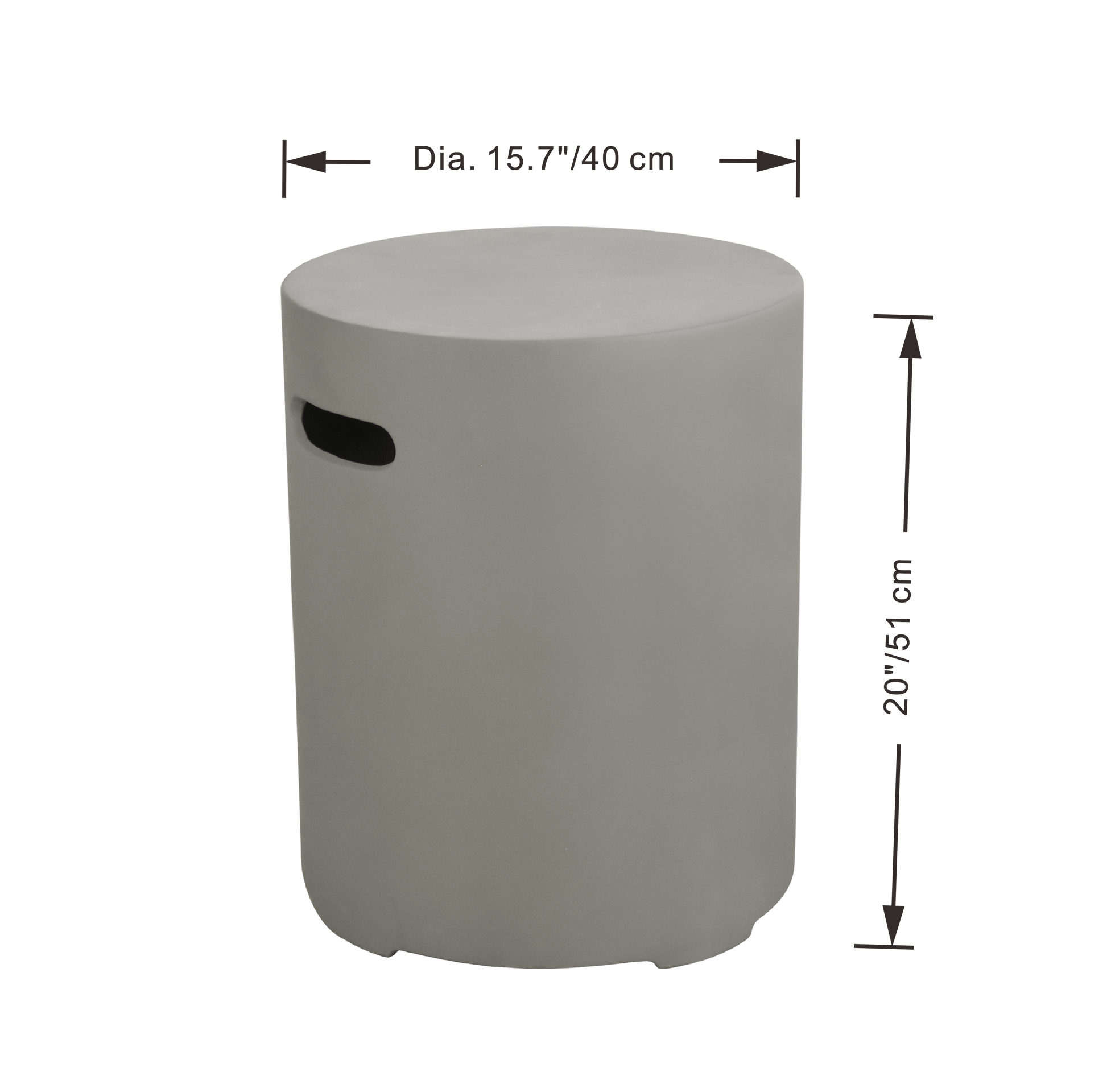 Crafted from high-performance concrete and finished with a sleek porcelain top, this propane tank cover can double as a side table or stool for extra seating space next to your fire pit. The light gray color complements any outdoor decor, making it a versatile addition to your patio setup.