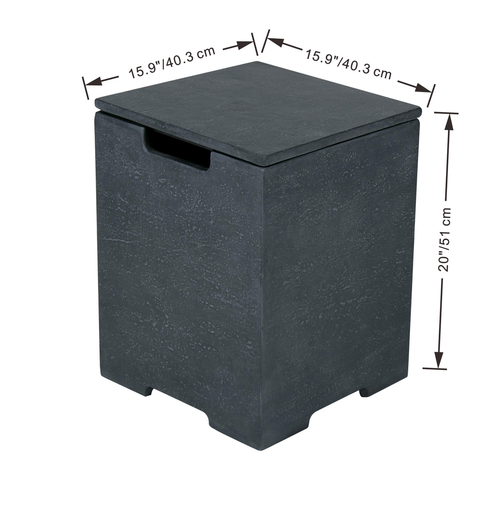 Keep your propane tank out of sight and protected with the Natural Limestone Concrete Propane Tank Cover in Dark Gray by Elementi. This propane tank cover is designed to be an attractive accessory to your propane gas fire pit, with a natural limestone finish that blends in beautifully with any outdoor patio decor.
