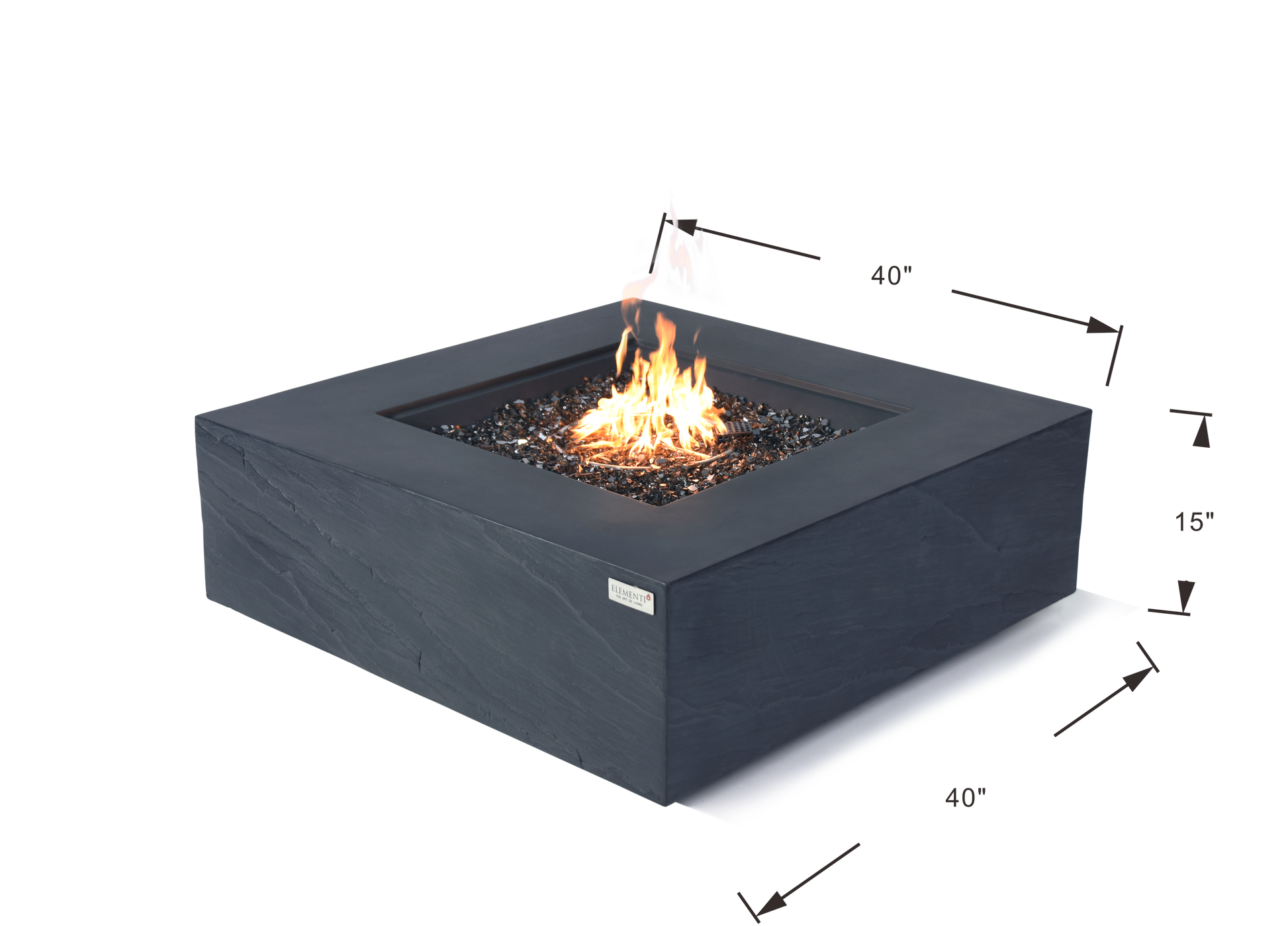 At 40" L x 40" W x 15" H, this fire pit table is the perfect size for any outdoor patio. Its square shape makes it easy to incorporate into any patio layout and adds a touch of modern flair.