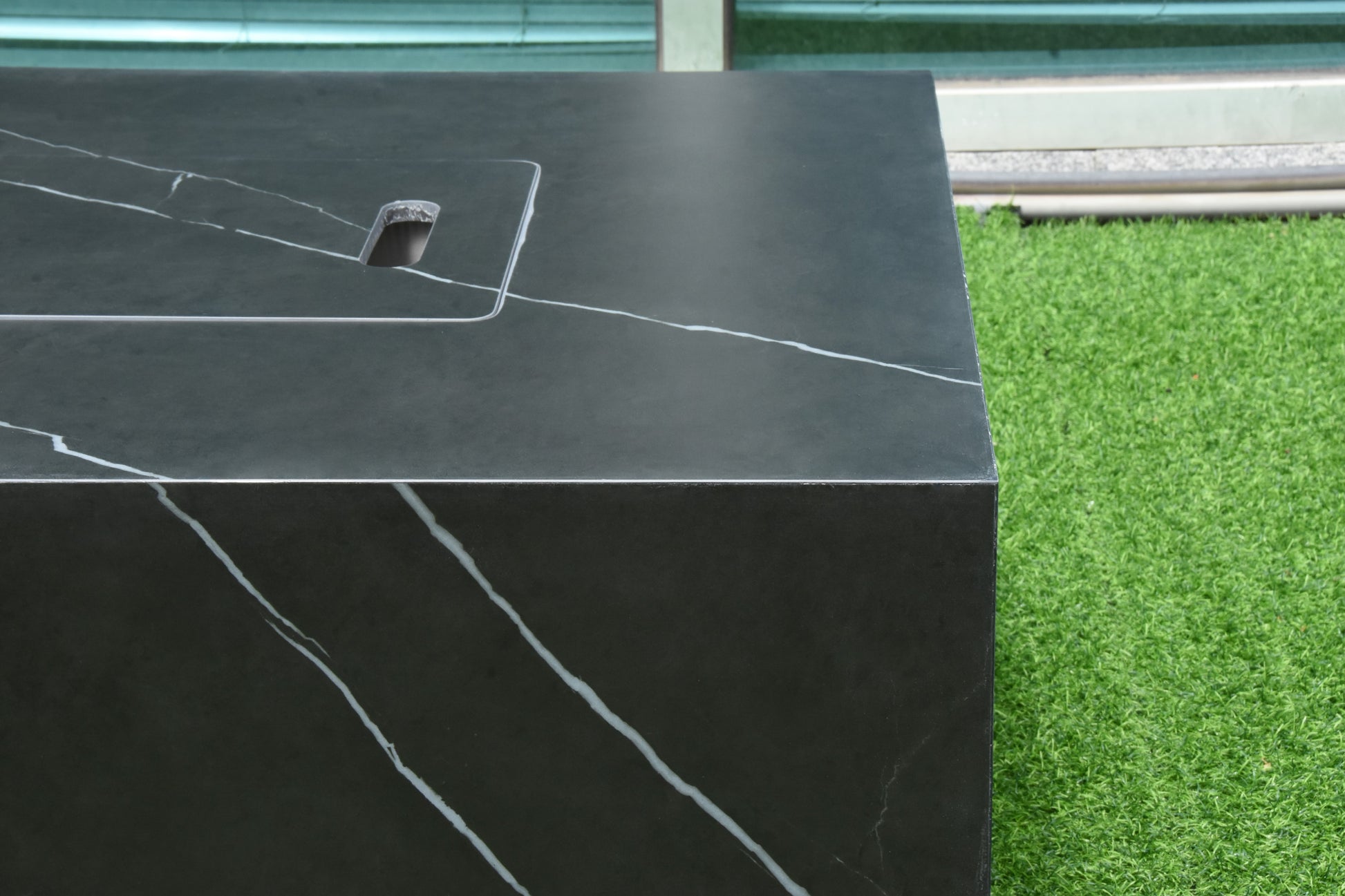 Place this Rectangle Modern Marble Porcelain Fire pit Table on your outdoor patio and let it be the centre point of loving memories. This Rectangle Fire Pit Table has an option for a Natural Gas Fire Pit or Propane Fire Pit as a fuel source. This Gas Fire Pit is constructed from a High-Performance Metal and Porcelain which makes it light and durable for any outdoor space.
