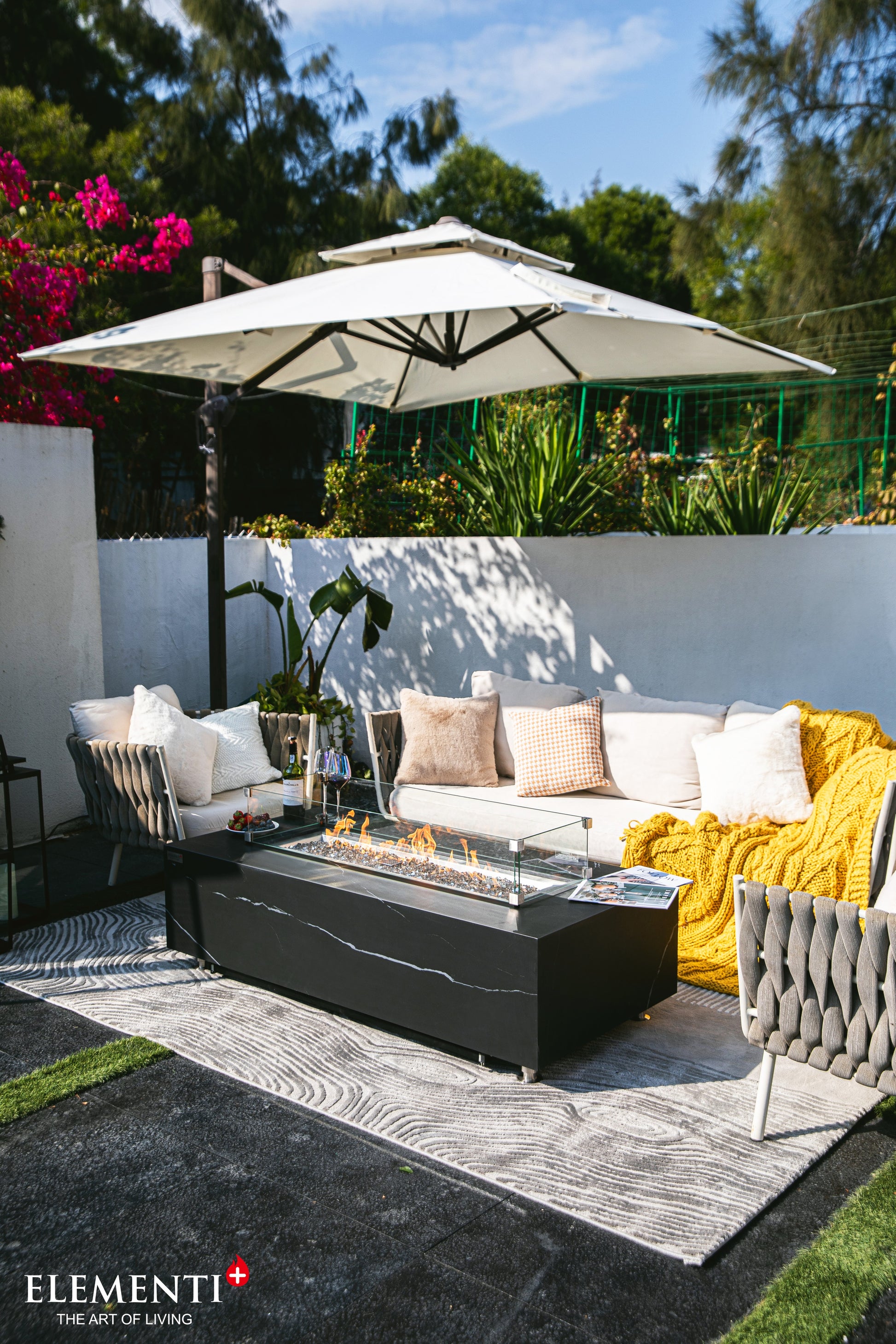 If you're looking for the best fire pit to elevate your outdoor patio area, the Varna Modern Marble Porcelain Rectangle Fire Pit Table from Elementi is a top choice. Its high-end construction and modern look make it a standout among outdoor fire pits.