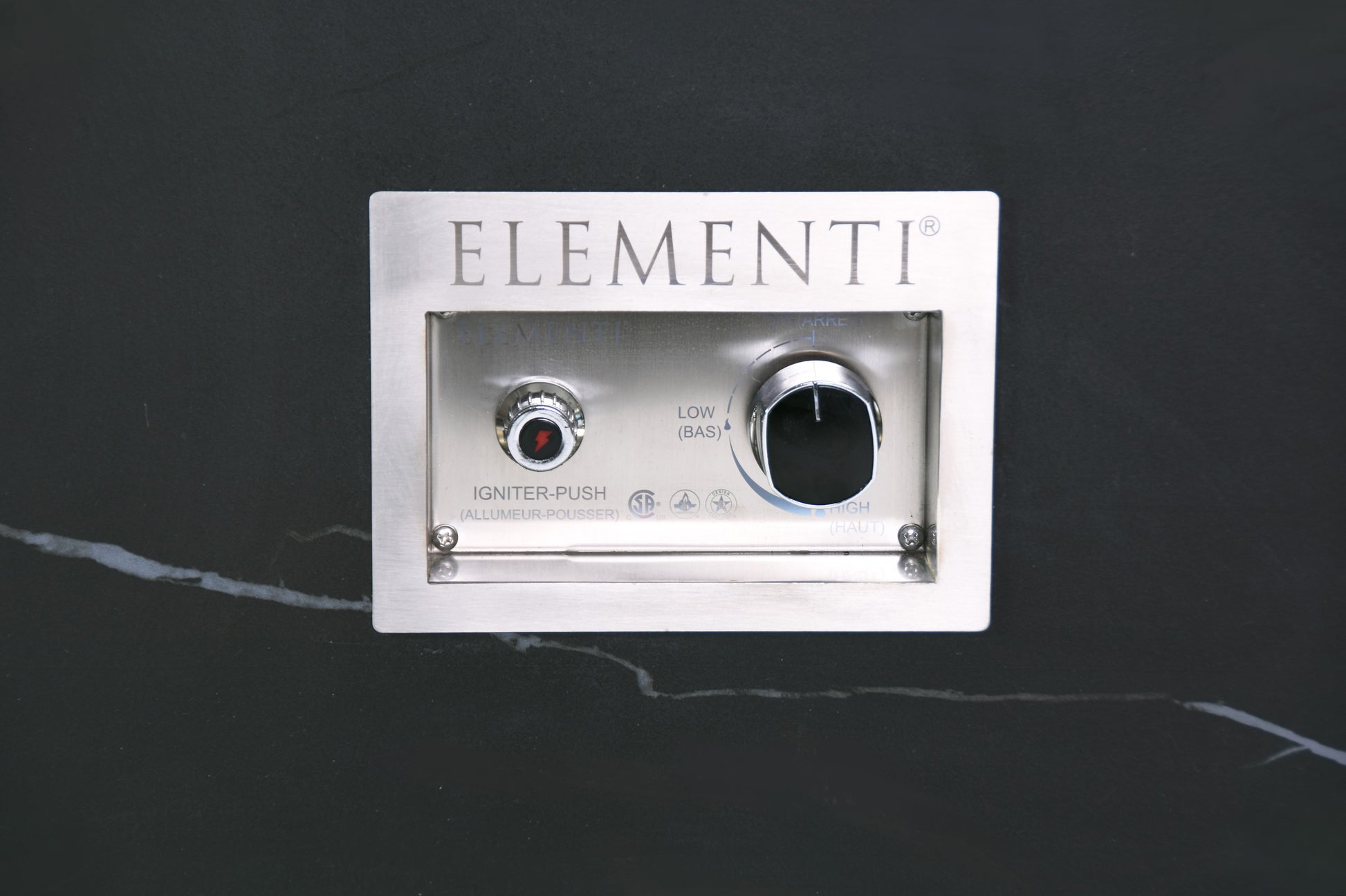 Introducing the Varna Modern Marble Porcelain Rectangle Fire Pit Table from Elementi - a stunning addition to your outdoor patio space that combines the warmth and ambiance of a traditional fire pit with the convenience of a modern gas-powered unit.